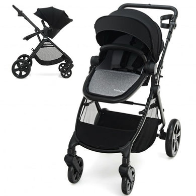 Foldable High Landscape Baby Stroller with Reversible Reclining Seat-Gray