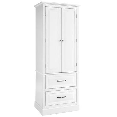 Tall Floor Storage Cabinet with 2 Doors and 1 Drawer for Bathroom-White