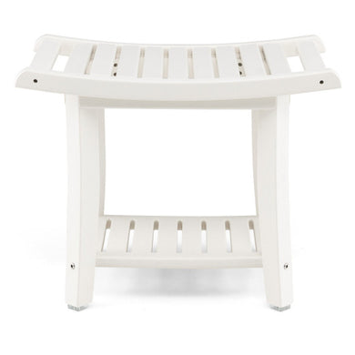 Waterproof Bath Stool with Curved Seat and Storage Shelf-White