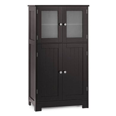 Bathroom Floor Storage Locker Kitchen Cabinet with Doors and Adjustable Shelf-Brown