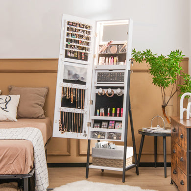 Freestanding Jewelry Cabinet with Full-Length Mirror-White