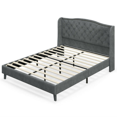 Full/Queen Size Upholstered Platform Bed Frame with Button Tufted Headboard-Queen Size