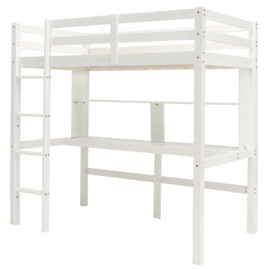 Twin Size Solid Wood Slatted Loft Bed Frame with Safety Guardrail for Kid-White