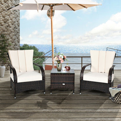 3PCS Rattan Coffee Table Set Chair-White