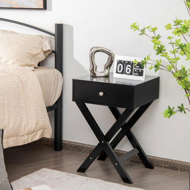 Wooden End Side Table Nightstand with Drawer Storage Shelf-Black