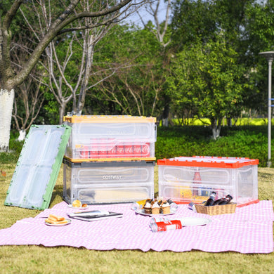 4 Pack Collapsible and Stackable Plastic Storage Bins with Attached Lid-L