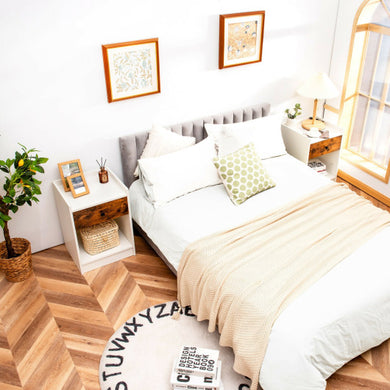 Set of 2 Nightstand with Drawer Cabinet End Side Table Raised Top-White