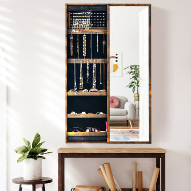 Wall Mounted Jewelry Full-Length Mirror Slide Cabinet Armoire-Rustic Brown