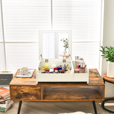 Compact Bay Window Makeup Dressing Table with Flip-Top Mirror-White