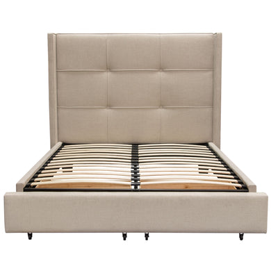 Beverly Queen Bed with Integrated Footboard Storage Unit & Accent Wings in Sand Fabric By Diamond Sofa