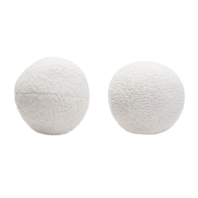 Set of (2) 10" Round Accent Pillows in White Faux Sheepskin by Diamond Sofa