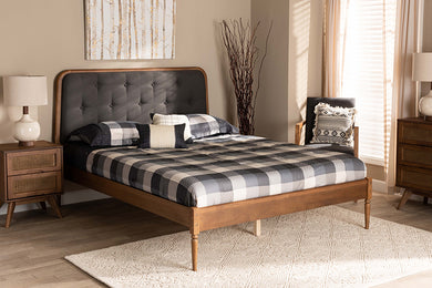 Baxton Studio Diantha Classic and Traditional Dark Grey Fabric Upholstered and Walnut Brown Finished Wood Full Size Platform Bed