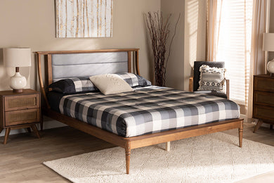 Baxton Studio Regis Modern and Contemporary Transitional Light Grey Fabric Upholstered and Walnut Brown Finished Wood Queen Size Platform Bed