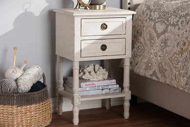 Baxton Studio Lenore Country Cottage Farmhouse Whitewashed 2-Drawer Nightstand
