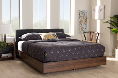 Baxton Studio Iselin Mid-Century Modern Brown Finished Dark Grey Fabric Upholstered Queen Sized Storage Platform Bed