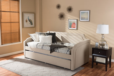Baxton Studio Cherine Classic and Contemporary Beige Fabric Upholstered Daybed with Trundle