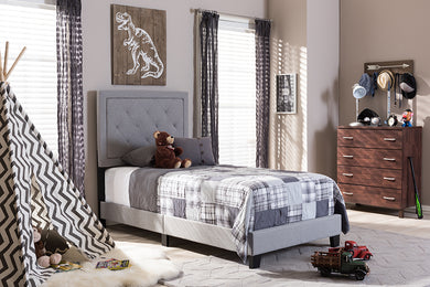 Baxton Studio Paris Modern and Contemporary Grey Fabric Upholstered Twin Size Tufting Bed