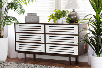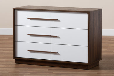 Baxton Studio Meike Mid-Century Modern Two-Tone Walnut Brown and White Finished Wood 6-Drawer Dresser