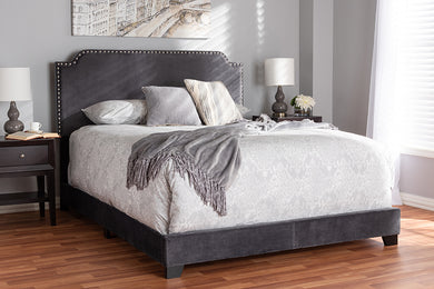 Baxton Studio Darcy Luxe and Glamour Dark Grey Velvet Upholstered Queen Size Bed