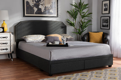 Baxton Studio Larese Dark Grey Fabric Upholstered 2-Drawer Queen Size Platform Storage Bed