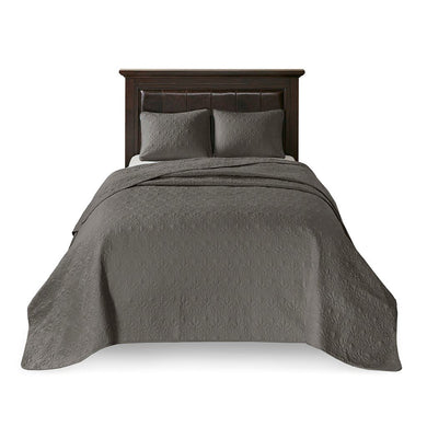 Madison Park Quebec 100% Polyester Fitted Bedspread - Queen - Dark Grey MP13-6474 By Olliix