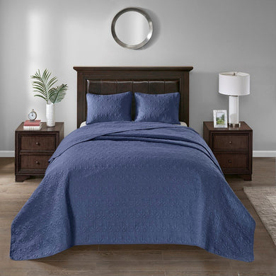 Madison Park Quebec 100% Polyester Fitted Bedspread - King - Navy MP13-6481 By Olliix