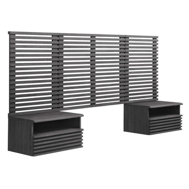 Render Wall Mount Queen Headboard and Modern Nightstands by Modway