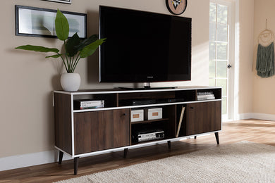 Baxton Studio Meike Mid-Century Modern Two-Tone Walnut Brown and White Finished Wood TV Stand