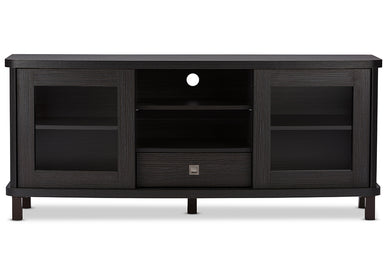 Baxton Studio Walda 60-Inch Greyish Dark Brown Wood TV Cabinet with 2 Sliding Doors and 1 Drawer