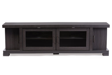 Baxton Studio Viveka 70-Inch Greyish Dark Brown Wood TV Cabinet with 2 Glass Doors and 2 Doors