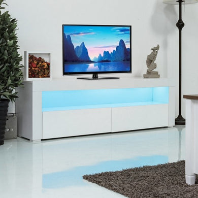 High Gloss TV Stand with LED Shelves and Drawers-White