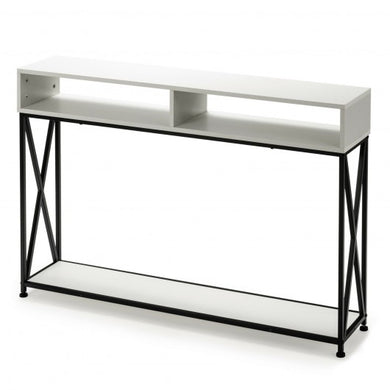• Console Table with Open Shelf and Storage Compartments Steel Frame-White
