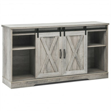 • 59" TV Stand with Adjustable Shelf and Sliding Barn Door Cabinet-Gray