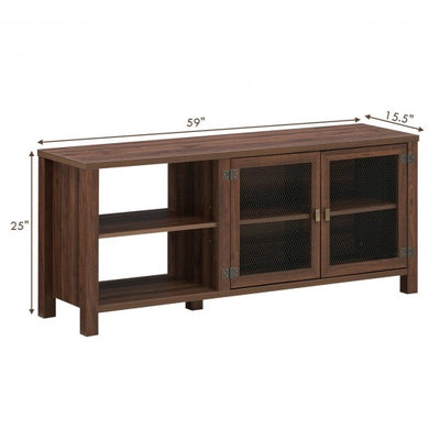 • Wooden TV Stand with 2 Metal Mesh Doors -Walnut