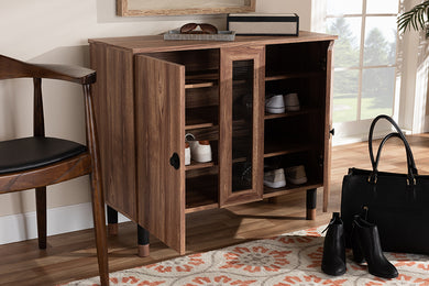 Baxton Studio Rossin Modern and Contemporary Walnut Brown Finished 2-Door Wood Entryway Shoe Storage Cabinet