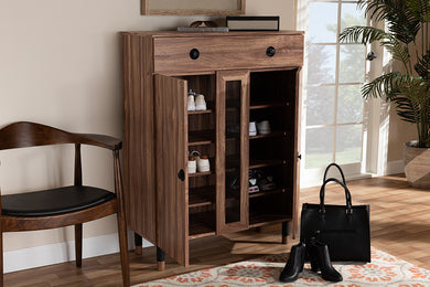 Baxton Studio Coolidge Modern and Contemporary Walnut Finished 4-Shelf Wood Shoe Storage Cabinet with Drawer