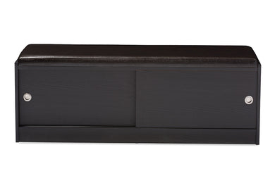 Baxton Studio Clevedon Modern and Contemporary Dark Brown Wood Entryway Storage Cushioned Bench Shoe Rack Cabinet Organizer