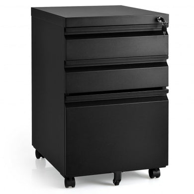 3-Drawer Mobile File Cabinet Stee with Lock-Black
