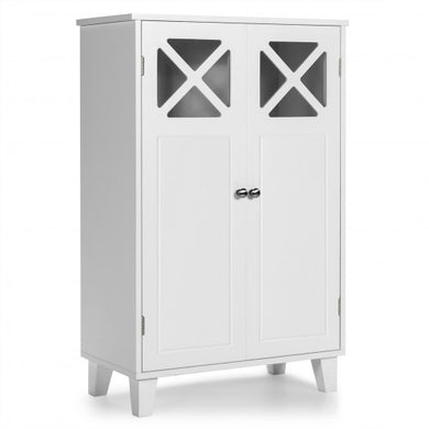 Wooden Freestanding Storage Cabinet with Visible Windows and 1 Adjustable Shelf