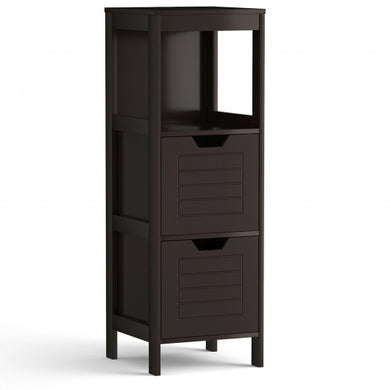 Bathroom Wooden Floor Cabinet Multifunction Storage Rack Stand Organizer-Coffee