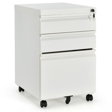 3-Drawer Mobile File Cabinet Stee with Lock-White