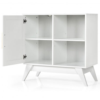 Storage Cabinet Free Standing with Adjustable Shelves Weaved Door-White