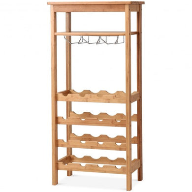16 Bottles Bamboo Storage Wine Rack with Glass Hanger