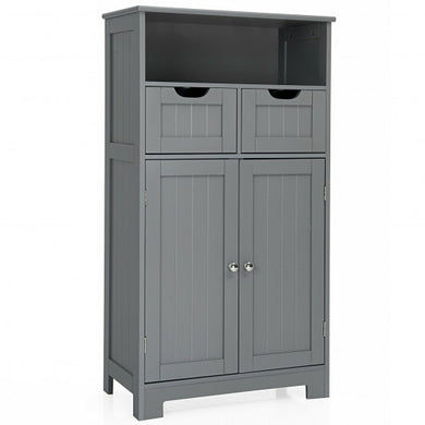 Bathroom Wooden Side Cabinet with 2 Drawers and 2 Doors-Gray