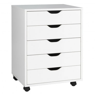 5 Drawer Mobile Lateral Filing Storage Home Office Floor Cabinet w/Wheels-White