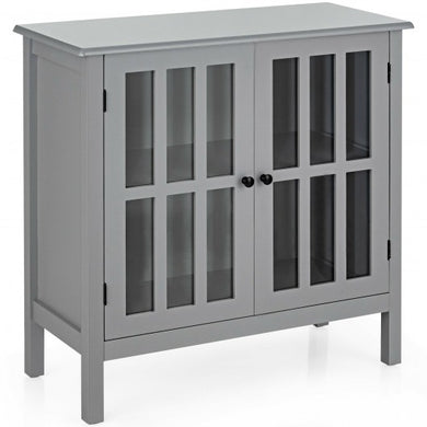 Glass Door Sideboard Console Storage Buffet Cabinet-Gray