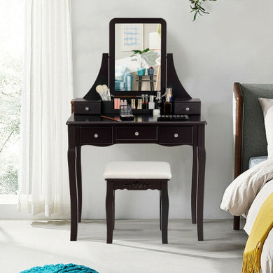 Vanity Set of Mirror Drawers Storage Box Makeup-Brown