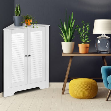 Adjustable Corner Storage Cabinet with Shutter Doors-White