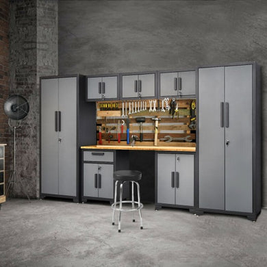 8 pcs Bamboo Worktop 24 Gauge Garage Storage Cabinet Set