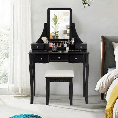 Vanity Wooden Makeup Dressing Table Stool Set with Mirror